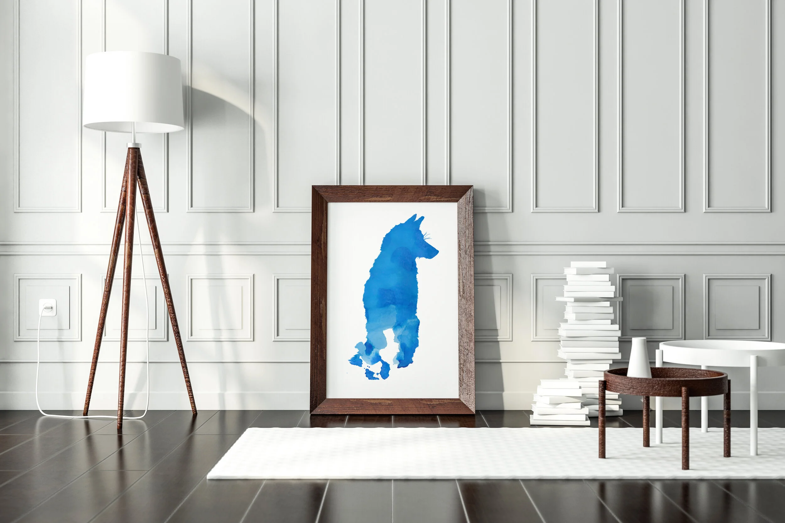 Vixen - Bleu Caeruleum - Splatter - wooden frame with white trim against panel wall.jpg